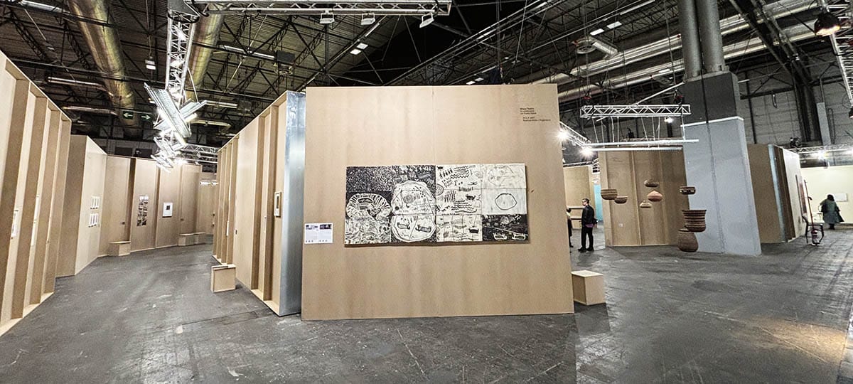 Every year, there is a special program. Every year this is more or less the same: About the South American art market. It is called Wametisé: Ideas for an Amazofuturism, an attempt to redefine art through hybridized perspectives of nature, humanity, and the metaphysical. The aim is to challenge artistic norms with 15 galleries from six countries and explore new forms of creation that reflect hybrid existences between human, plant, physical, and metaphysical bodies. The exhibition space is built with untreated chipboard panels designed for reuse, reducing environmental impact: